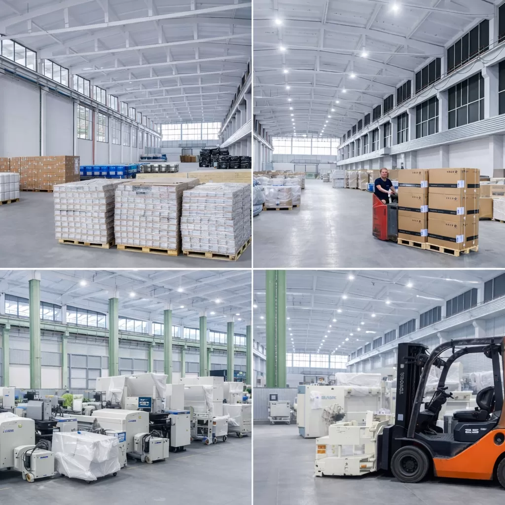 Логистичният център с площ от 6500 кв.м., предлага складиране и товаро-разтоварни операции на палетизиран и непалетизиран товар от 1 кг. до 10 000 кг. със специализирана складова техника, включваща 5-тонен мотокар и кран.